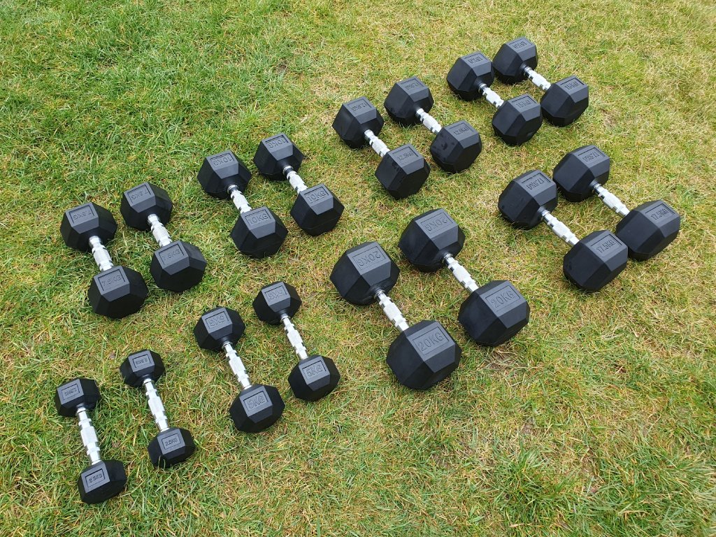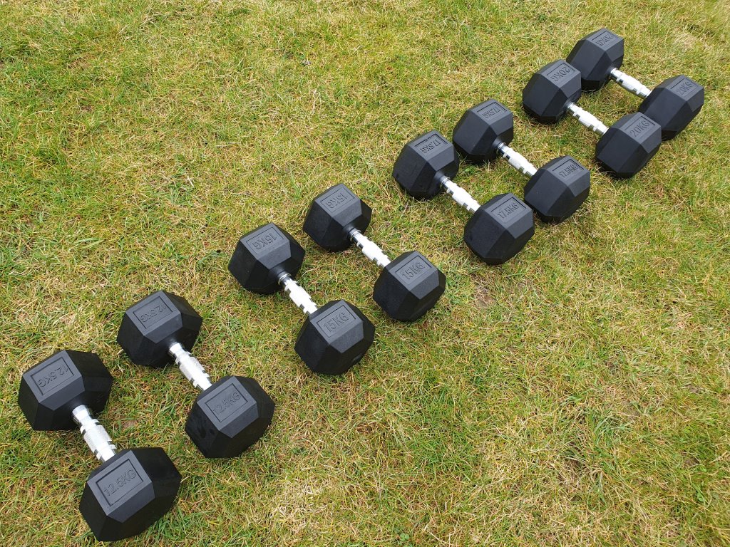 Sada činek o celkové váze 180kg je skládá z jednoruček 2x2,5kg 2x5kg 2x7,5kg 2x10kg 2x12,5kg 2x15kg 2x17,5kg 2x20kg, šestihranné činky určené pro profesionální použití jak doma tak v posilovně. Šestihranný tvar zamezuje nechtěnému pohybu činky při jejím odložení a pogumování prodlužuje její životnost. Chromovaný úchop je opatřen rádlováním pro jistější držení.