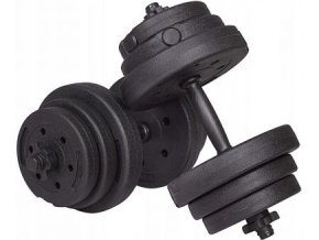 Jednoruční činky o váze 2x20kg, nakládací, plastové.