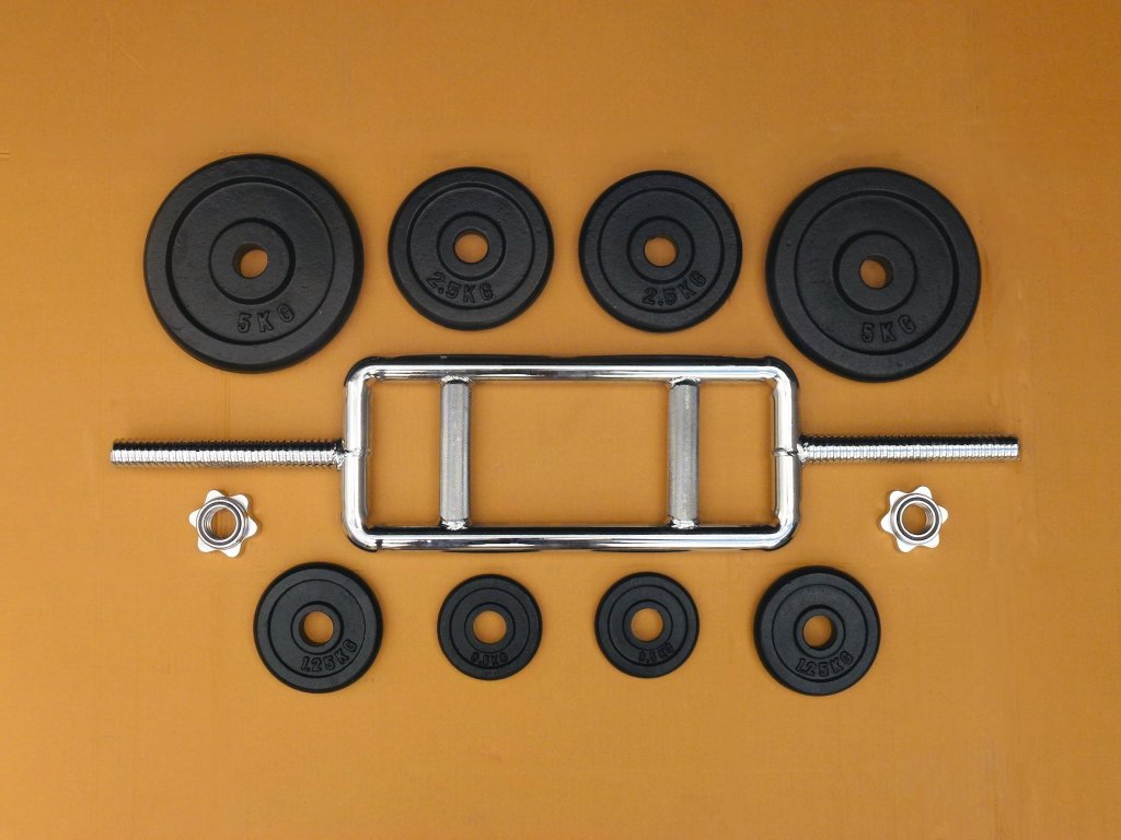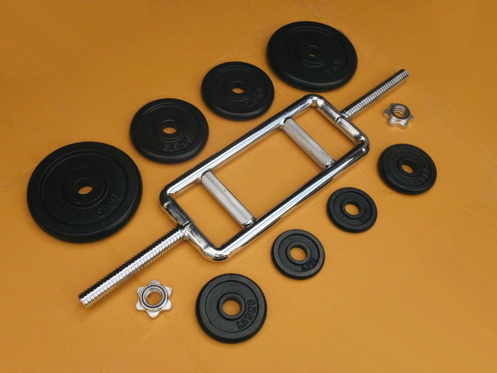 Obouruční EZ činka o celkové váze 26kg se skládá z: