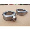 Masivní uzávěry z oceli na hladké osy 25mm, železné kroužky, zatažení na imbusový vroubkovaný šroub (stačí zatahnout rukou). Spolehlivé a rychlé řešení zajištění kotoučů. Jedná se o masivní silnostěnné provedení. Tyto uzávěry splňují i ty nějvyšší nároky na přesnost provedení a komfort při cvičení. Cena je za pár. Lze použít jak na hladké tak na šroubové osy.