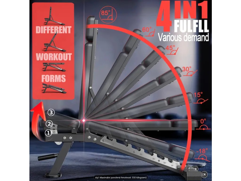 - Víceúčelová lavice navržena pro trénink s jednoručkami