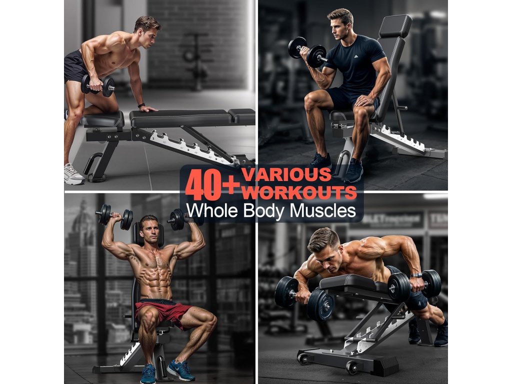 - Víceúčelová lavice navržena pro trénink s jednoručkami