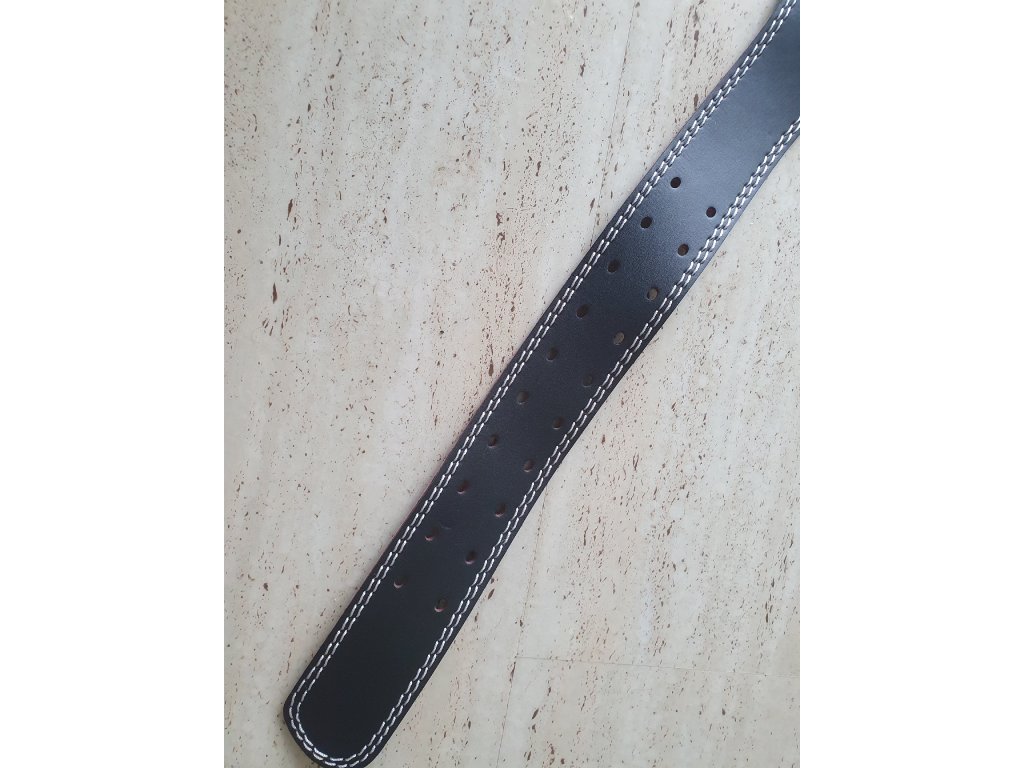 Kvalitní opasek pro silové sporty vyroben z kvalitní PU kůže s lesklým povrchem. Vnitřek je vyroben z měkké broušené kůže opatřené anatomickou měkkou vycpávkou, která zajišťuje dokonalé přilnutí na všechny oblasti bederní páteře, čímž pomáhá zmírnit tlak při zvedání těžkých vah.