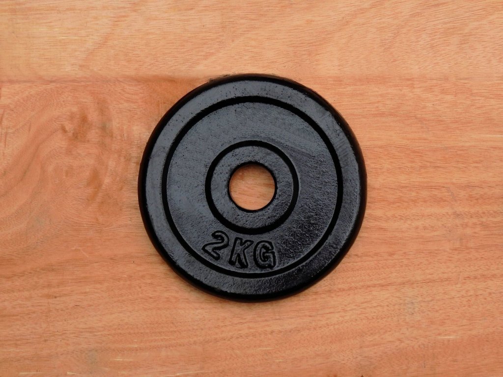 Železný kotouč (závaží) z litiny hmotnosti 2kg. Průměr díry je určen na hřídele o průměru 30mm (vrtání díry je 31mm). Černá barva.